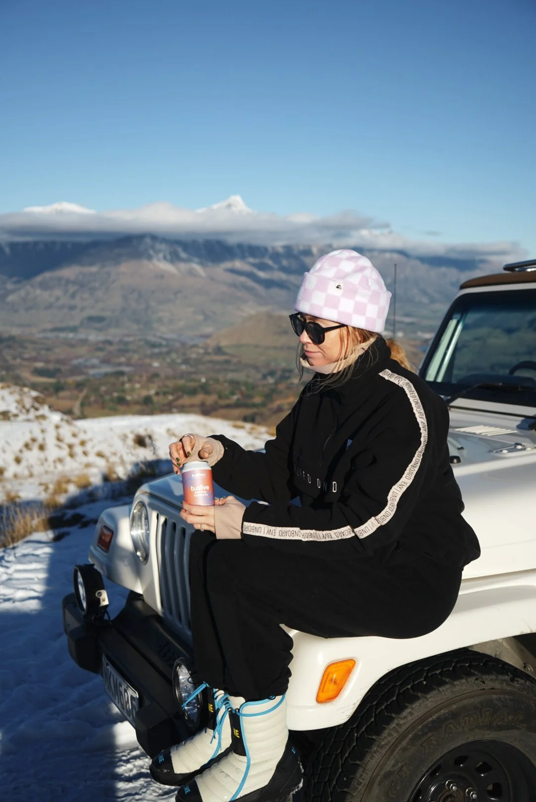 Crown Beanie Pastel Pink & Black