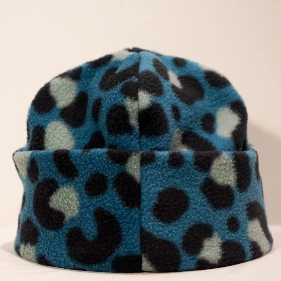 Round Beanie Teal Leopard