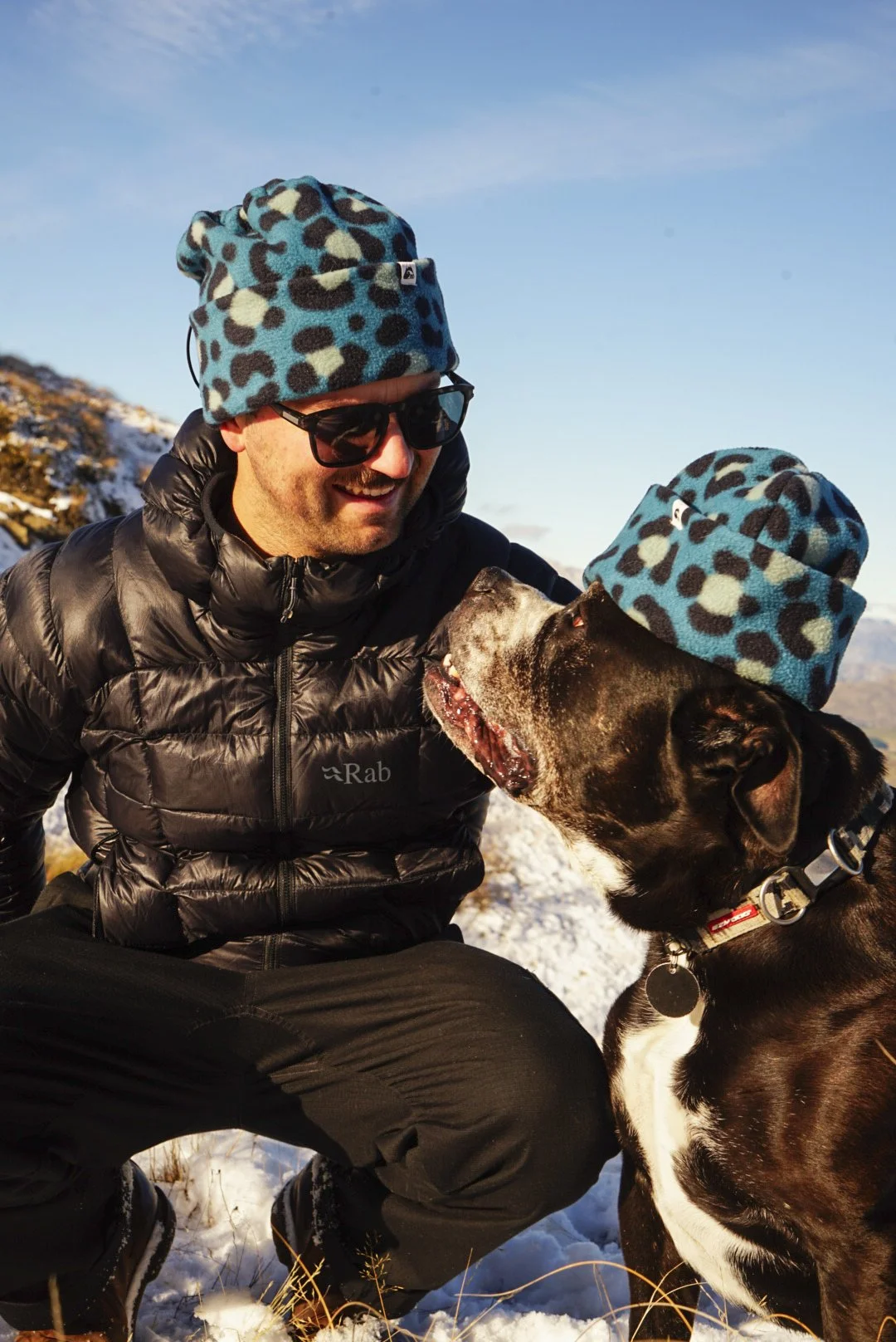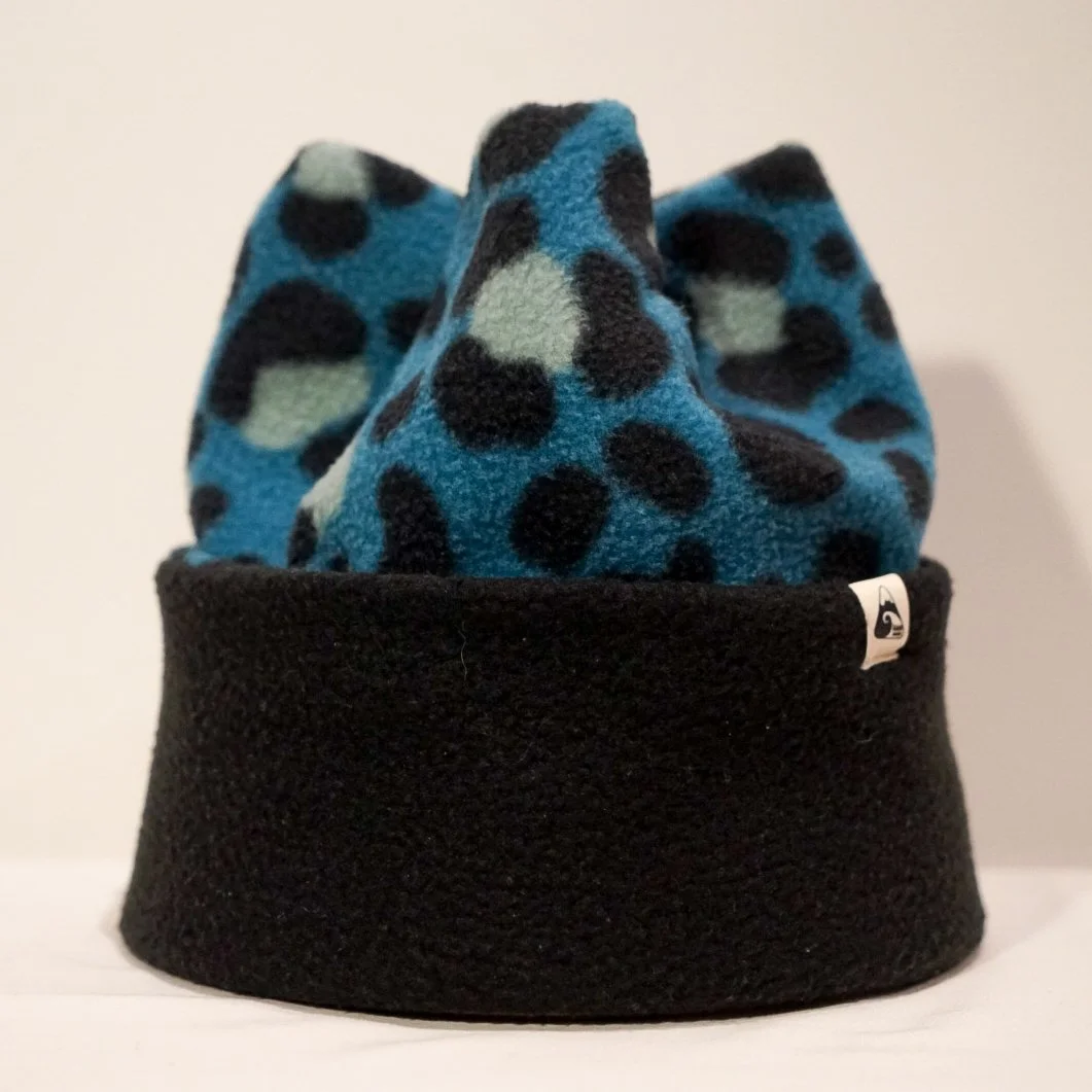 Crown Beanie Black & Teal Leopard