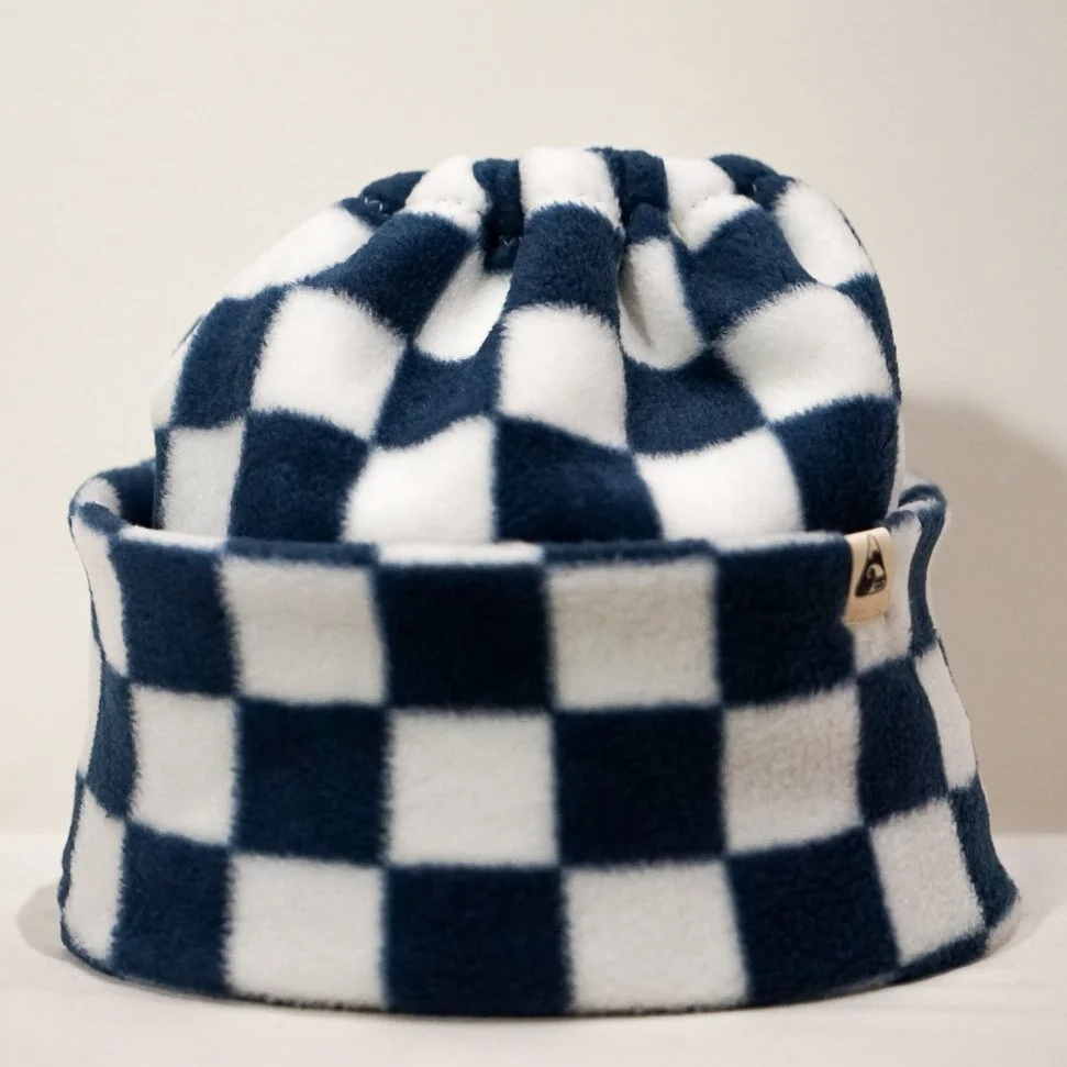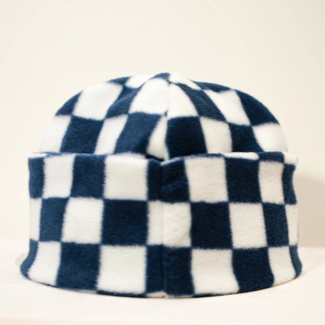 Round Beanie Navy Checks
