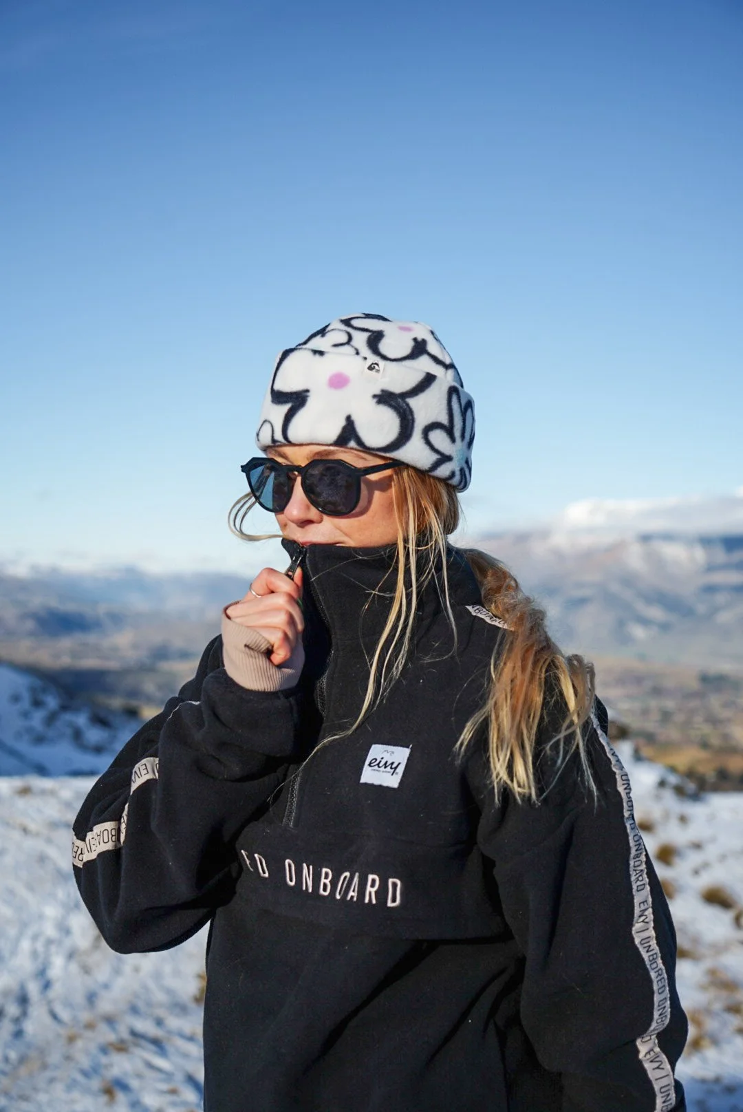 Crown Beanie Black & Flower Scribbles